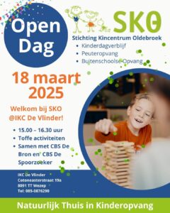 Op de locaties IKC De Vlinder aan de Cotoneasterstraat in Wezep, CKC De Regenboog aan de Sytzamalaan in Oldebroek en Peuteropvang Kukeluussien in Bovenheigraaf is het op 18 en 20 maart open dag. Kom langs om zelf te ervaren hoe wij op onze locaties samen met de kinderen leuke herinneringen maken! Naast SKO houden ook de basisscholen van de Kindcentra open dag, een ideaal moment dus om een kijkje te komen nemen!