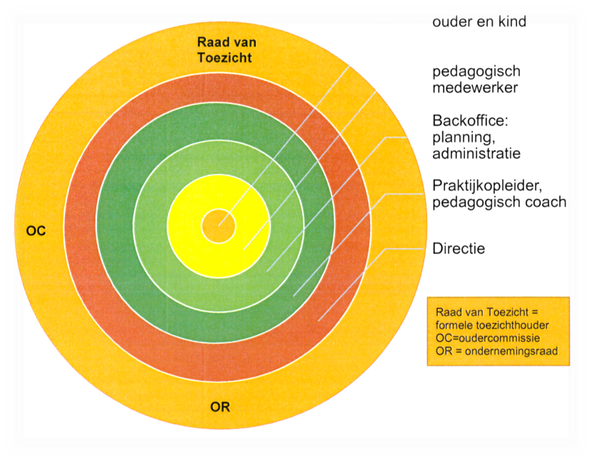 Stichting Kindcentrum Oldebroek is een platte organisatie waar het kind en de ouders centraal staan. Daarom staan zij midden in van het organogram van SKO en praten wij daarom als organisatie over 100% van en voor kinderen (en ouders).