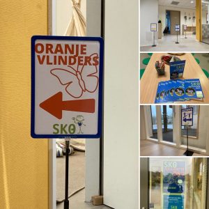 Vorige week is de vakantie BSO ‘Buitenspel’ van SKO voor het eerst niet aan de Hoeloseweg maar bij IKC De Vlinder in Wezep gehouden. De vrijdag voor aanvang konden ouders en kinderen al een kijkje nemen op de nieuwe locatie, waar beter het groeiend aantal kinderen opgevangen kunnen worden. IKC De Vlinder heeft alles in huis wat we nodig hebben om de kinderen veilig te kunnen opvangen en te kunnen vermaken: voldoende groepslokalen voor de verschillende leeftijdsgroepen, een sportzaal, ruimte om te knutsel en een hele grote buitenspeelplaats. Het IKC is natuurlijk best groot dus we hebben spciale wegwijs bordjes gemaakt die de kinderen hielpen om de gymzaal, toiletten, hun lokalen en de buitenspeelplaats te vinden.